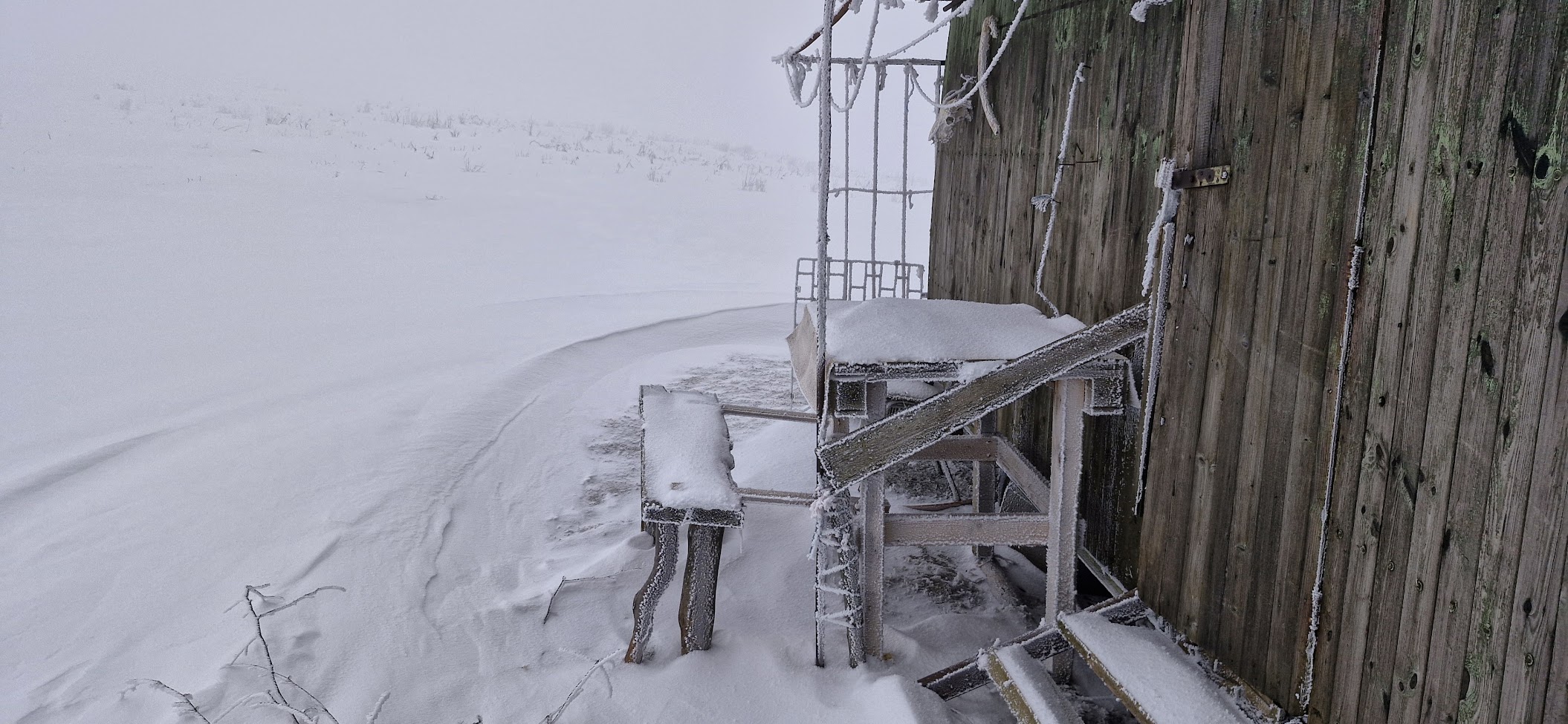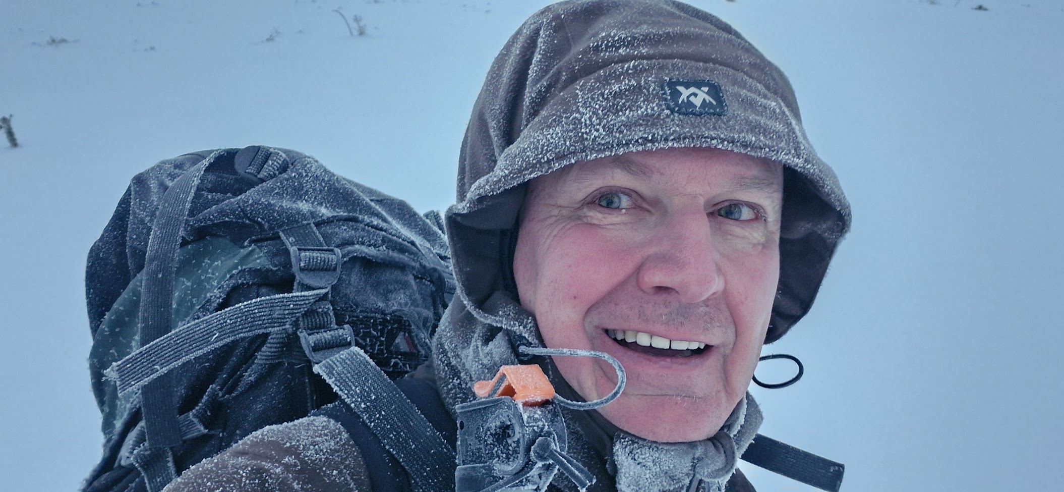Zastavuji se tady jen proto, abych si mohl v závětří uvařit oběd. Pramen ze kterého obvykle nabírám vodu na polévku je dnes hluboko pod sněhem a patrně i zamrzlý, vzhledem k -12 °C, které tady aktuálně panují. Nabírám tedy do ešusu sníh, abych si jej na vařiči roztopil. Musím s víčkem od ešusu ven do té fujavičky ještě třikrát, abych měl dost vody na tradiční nudlovou polévku s masem.