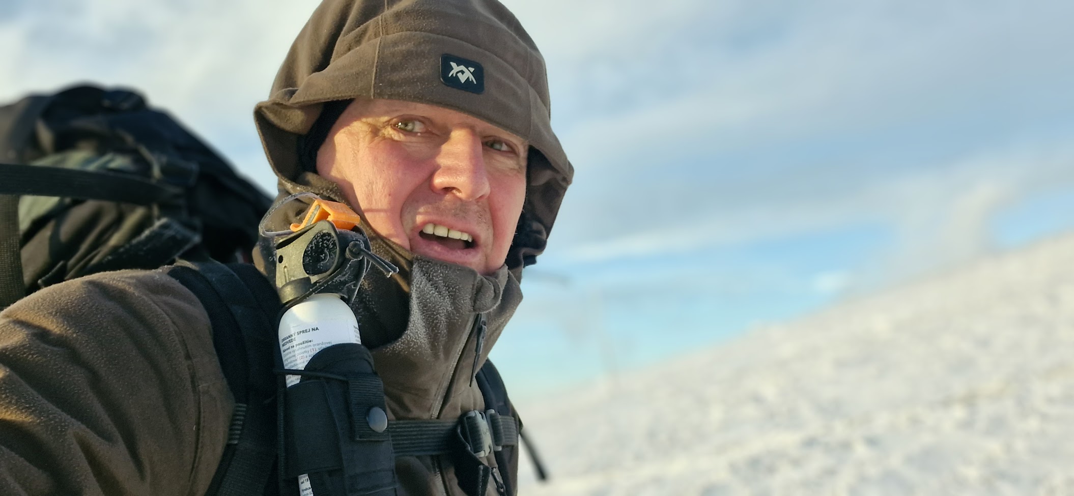 Bágl mi dneska váží asi 14 kg – při prvním zimním přechodu (ale to jsem s sebou tahal zbytečně i stan) mi vážil 27 kg. Dneska s sebou tahám zbytečně asi jen skialpinistickou helmu, bivakovací pytel (mimo bivakovacího hrobečku), plastovou krabici na nakrájený chleba (aby neokoral), 1,5 litrovou plastovou láhev minerálky (která mi cestou do večera zase zmrzne), sprej proti medvědům (ti by ale měli v tento čas teoreticky spíše odpočívat někde zahrabaní) a necelý kilogram rezervního jídla pro případ, že by se dnešní akce protáhla. Na druhou stranu bych měl být schopen bez větších problémů přečkat noc i mimo útulňu, pokud bych k ní nestihl dojít, a nebo by byla plně obsazená.
