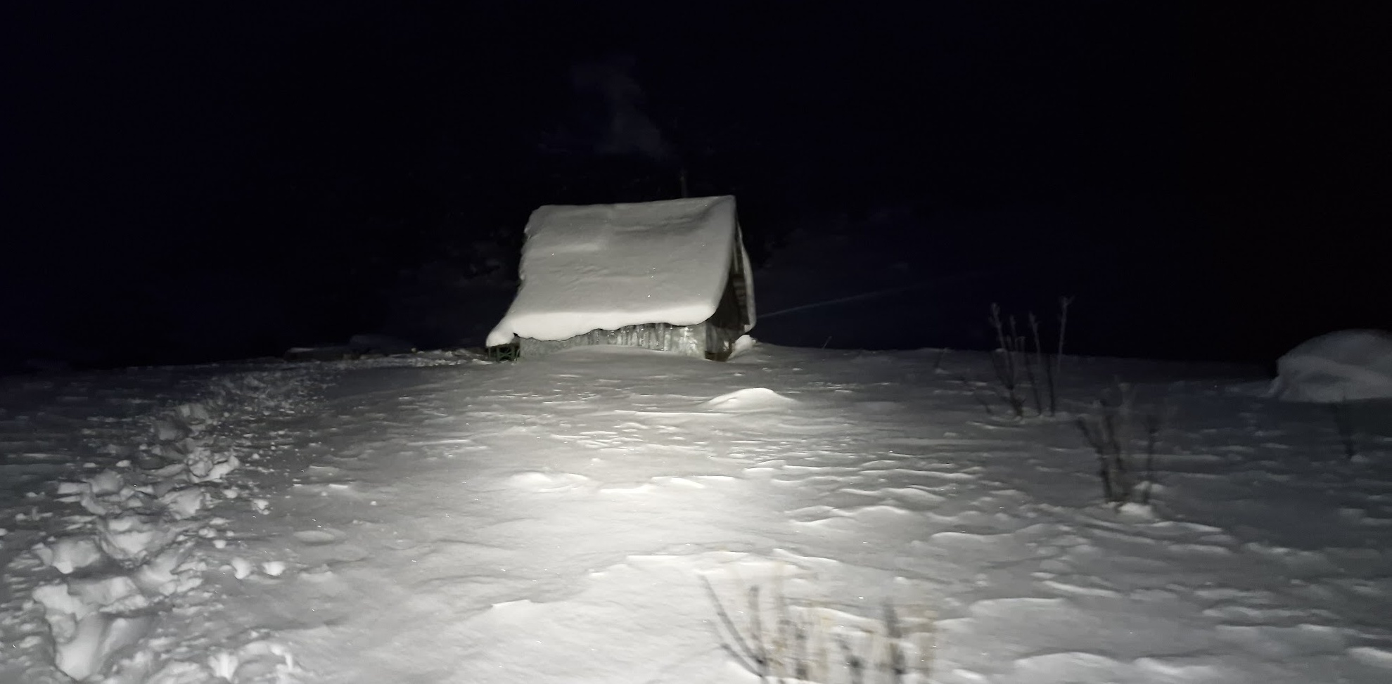 Odměnou mi je pohled na mini útulňu z jejíhož komína se nekouří – je tedy prázdná. A tak těch 100 metrů k ní sjíždím s radostí, že nebudu muset nikoho, kdo dorazil přede mnou, obtěžovat.