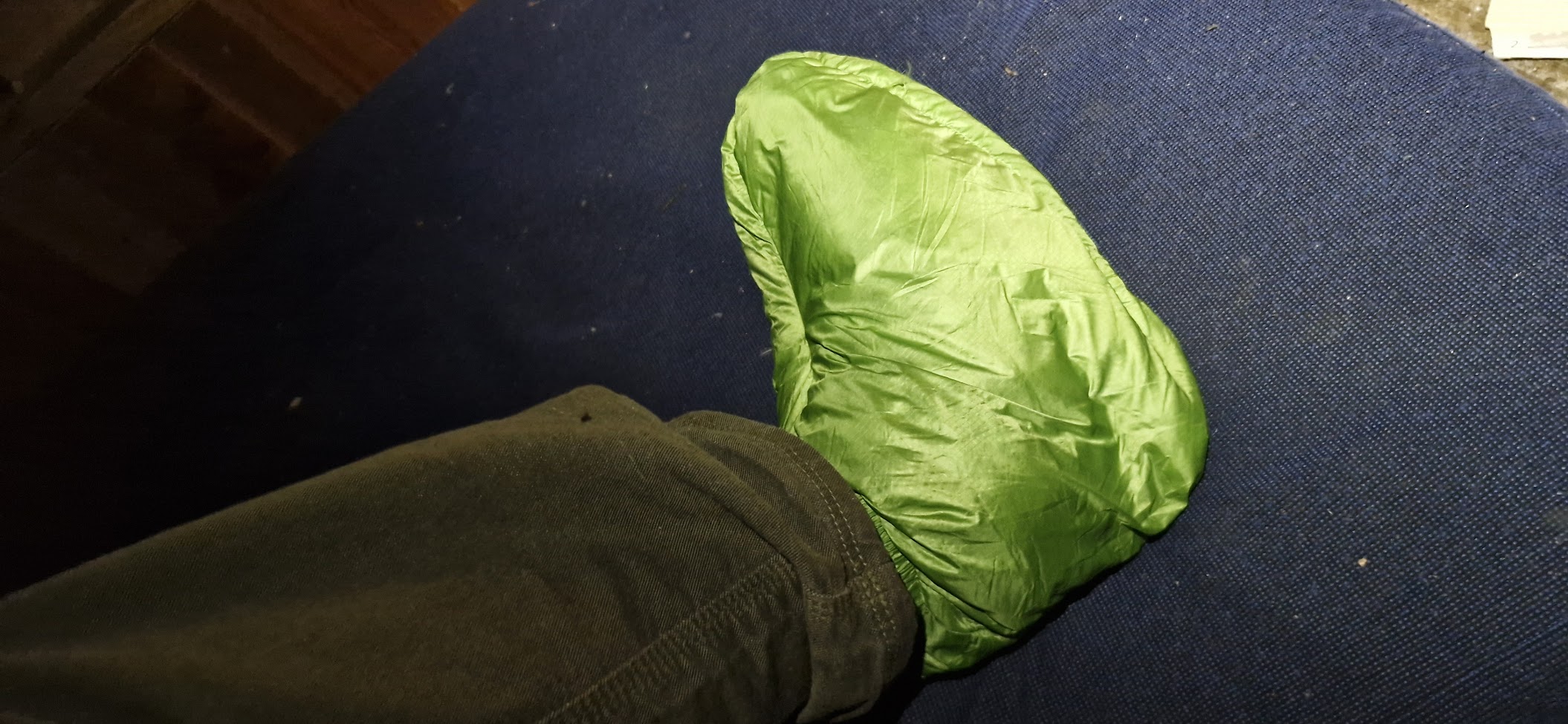 Loni při potulce s Murzou a Mirisem po Malé Fatře jsem viděl u Mirisa péřové „ponožky“, které si pořídil spolu s novým péřákem. Inspiroval mne a tak jsem si je pořídil taky (ovšem na Temu). Dneska je prvně zkouším. Když musím vylézt ze spacáku, abych se šel ven vyčůrat, nemusím péřové ponožky sundávat a nazouvám na ně skelet skialpových lyžáků (vnitřek lyžáků se suší nad kamny) – šetří to čas, nervy i energii před tím než vylezu z útulně i po té co se do ní vrátím.