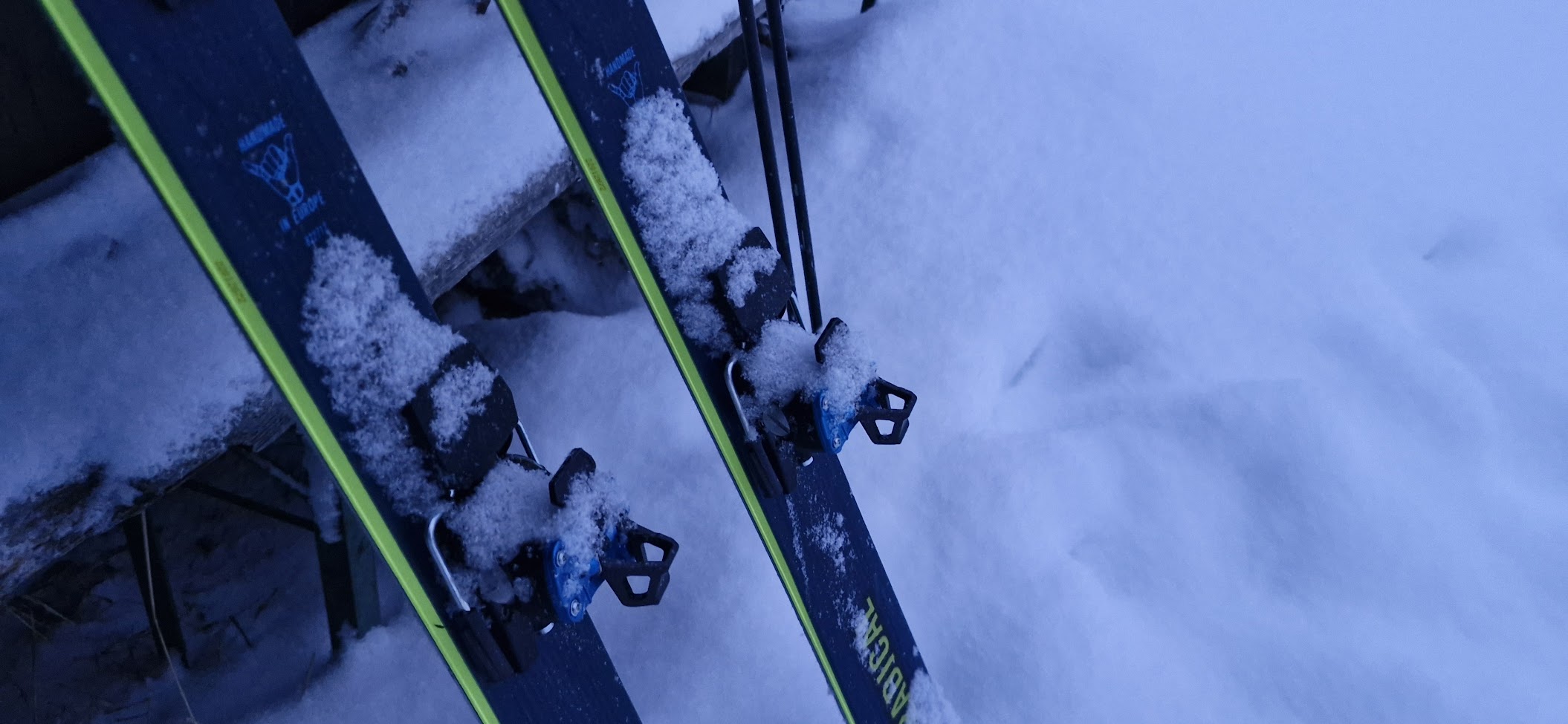 Hodlám si ti užít, protože dnešní skialpové lyžáky jsou po čtvrt století opravdu určené pro skialpinismus. Dají se fakt kombinovat pro výstup na lyžích a následný sjezd. Odlišují se od klasických sjezdových lyžáků výrazně nižší hmotností, větší pohyblivostí komínu s režimy „walk“ a „ski“ + gumovou protiskluzovou podrážkou pro chůzi bez lyží. Jsou kompatibilní s techovými vázáními a ty nejlehčí váží méně než 1,5 kg na pár, což usnadňuje výšlapy. Ty lyžáky v nichž jsem absolvoval Velkou Fatru před desítkami lety vážily skoro 5 kg, ty co mám dnes mají oba dohromady 2,5 kg. S lyžemi to je podobné. Tipuji, že moje dnešní lyžařské vybavení je o polovinu lehčí. A asi není o moc těžší než to backcountry vybavení na kterém jezdím slovenské hory posledních víc než 20 let.