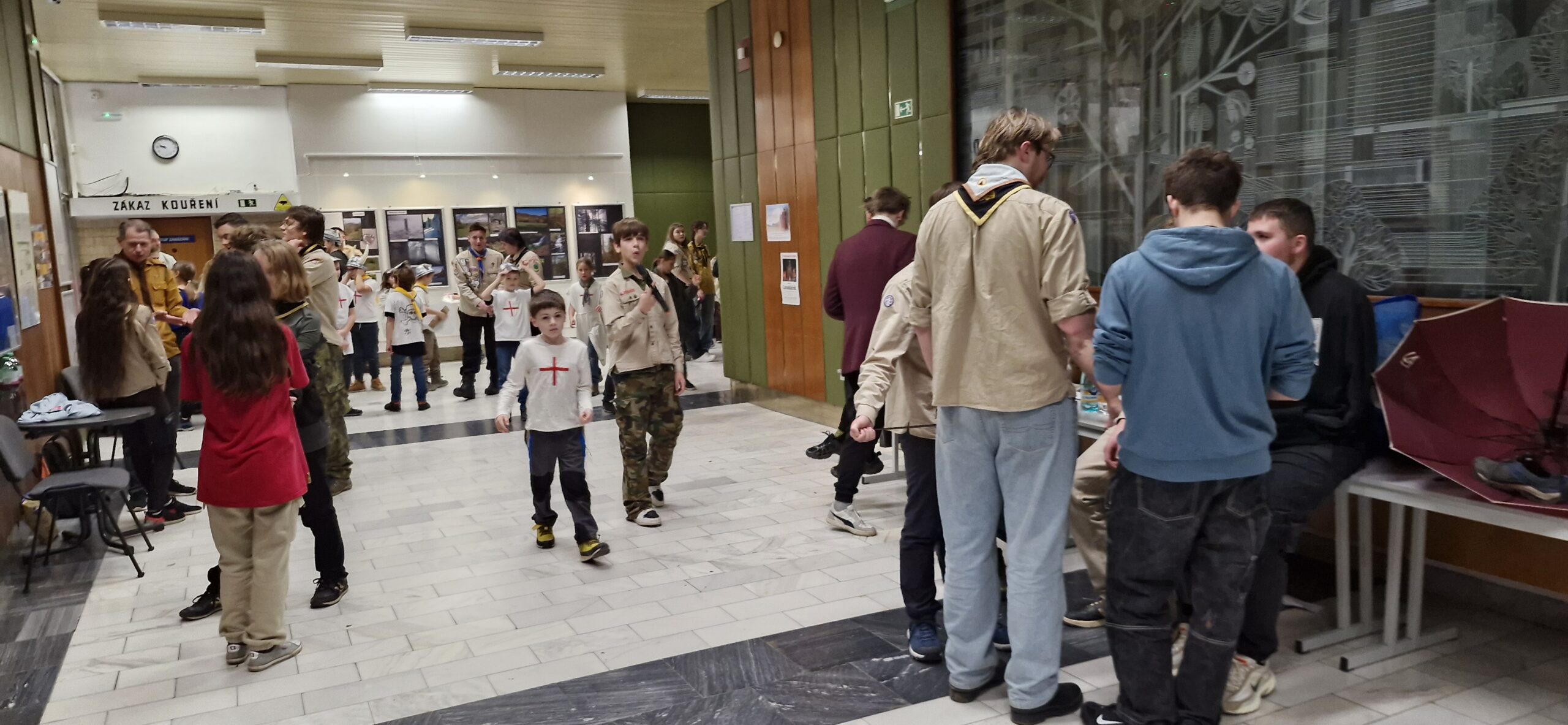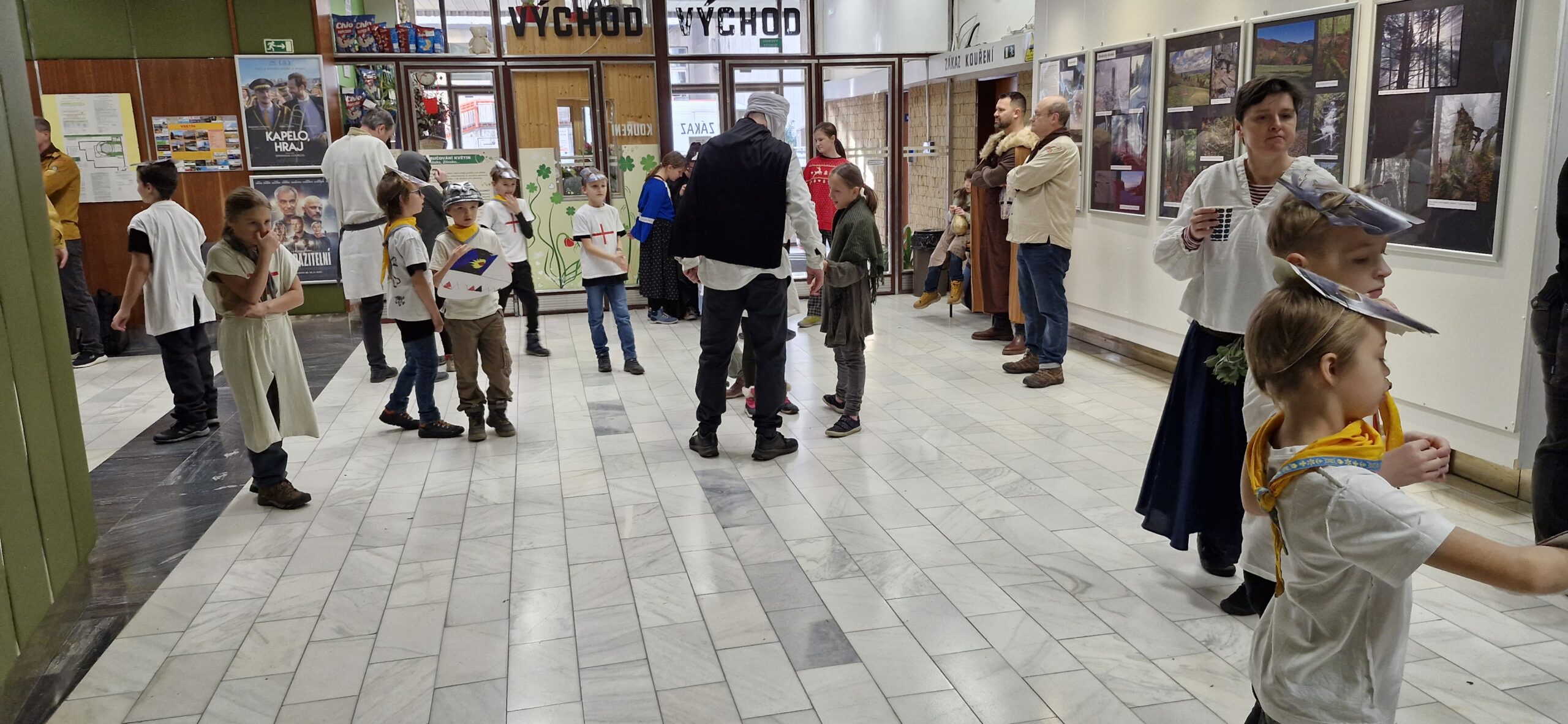 Ačkoliv už jsou dveře do sálu otevřené, předsálí se ještě hemží členy všech oddílů vsetínského střediska. Pobíhají tady v kostýmech, jak je na sobě mají ze zkoušky, kterou před pár desítkami minut absolvovali.