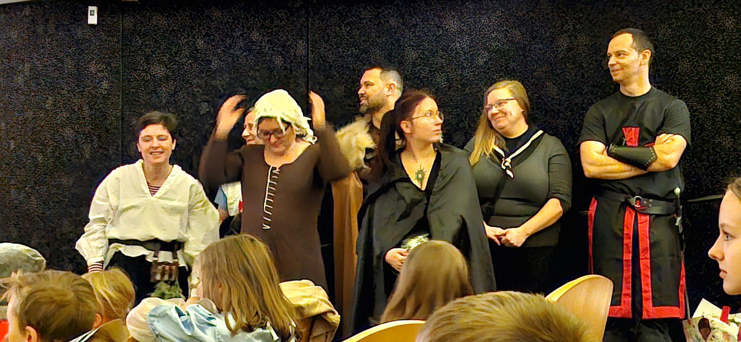 První bude asi vystupovat 9. oddíl – vsetínské Světlušky a Vlčata, protože vedení oddílu stojí ve svých kostýmech kousek od jeviště, aby bylo připraveno konat.