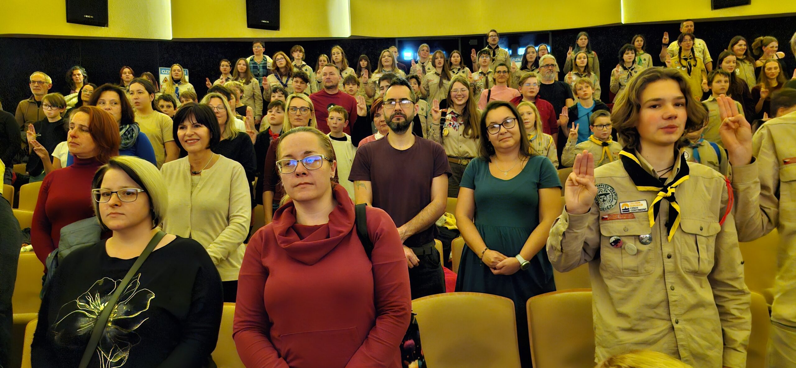 Na závěr Akademie jsme si ve stoje zazpívali Junáckou hymnu, kterou mnozí znají z ranních táborových nástupů. A tady zněla výrazně mohutněji :- )