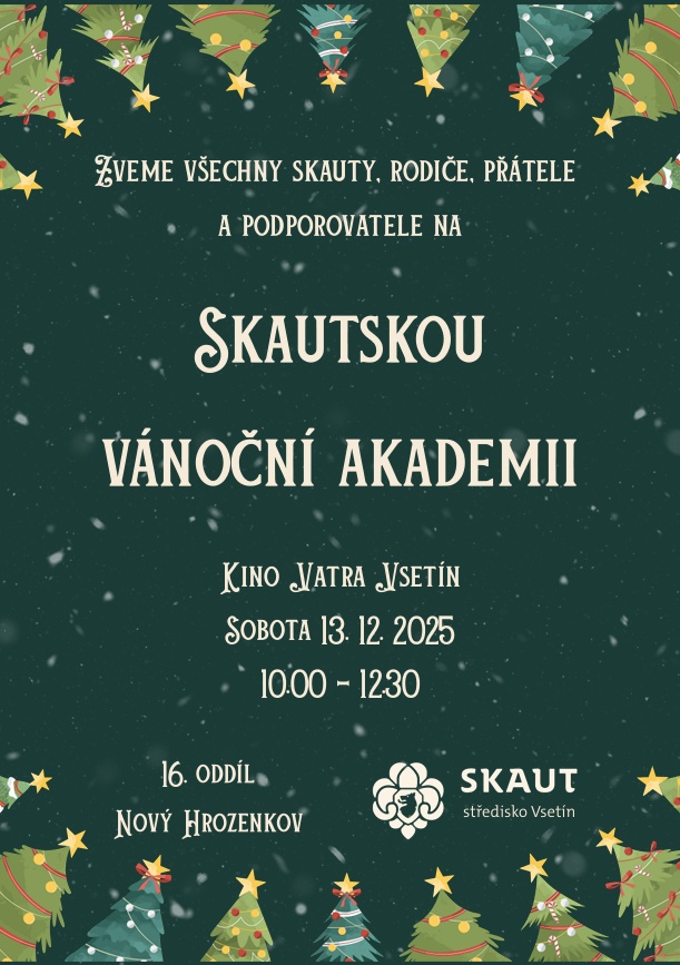 (Dazul) Středisková Vánoční akademie vsetínského střediska Junáka se v předvánoční čas koná pravidelně od roku 1990. Takže letos už se všechny oddíly našeho střediska sešly už po šestatřicáté!
