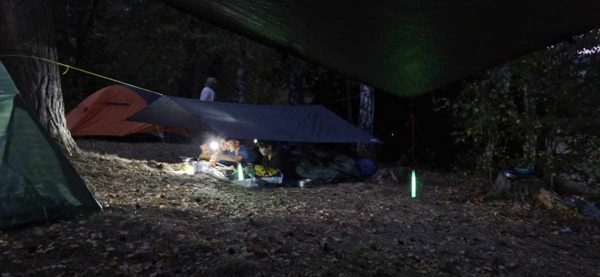 Oheň samozřejmě nerozděláváme, jen si na vařičích s plynovými kartušemi ohříváme vodu na nudlové polévky a těstoviny, abychom se zaslouženě nadlábli.