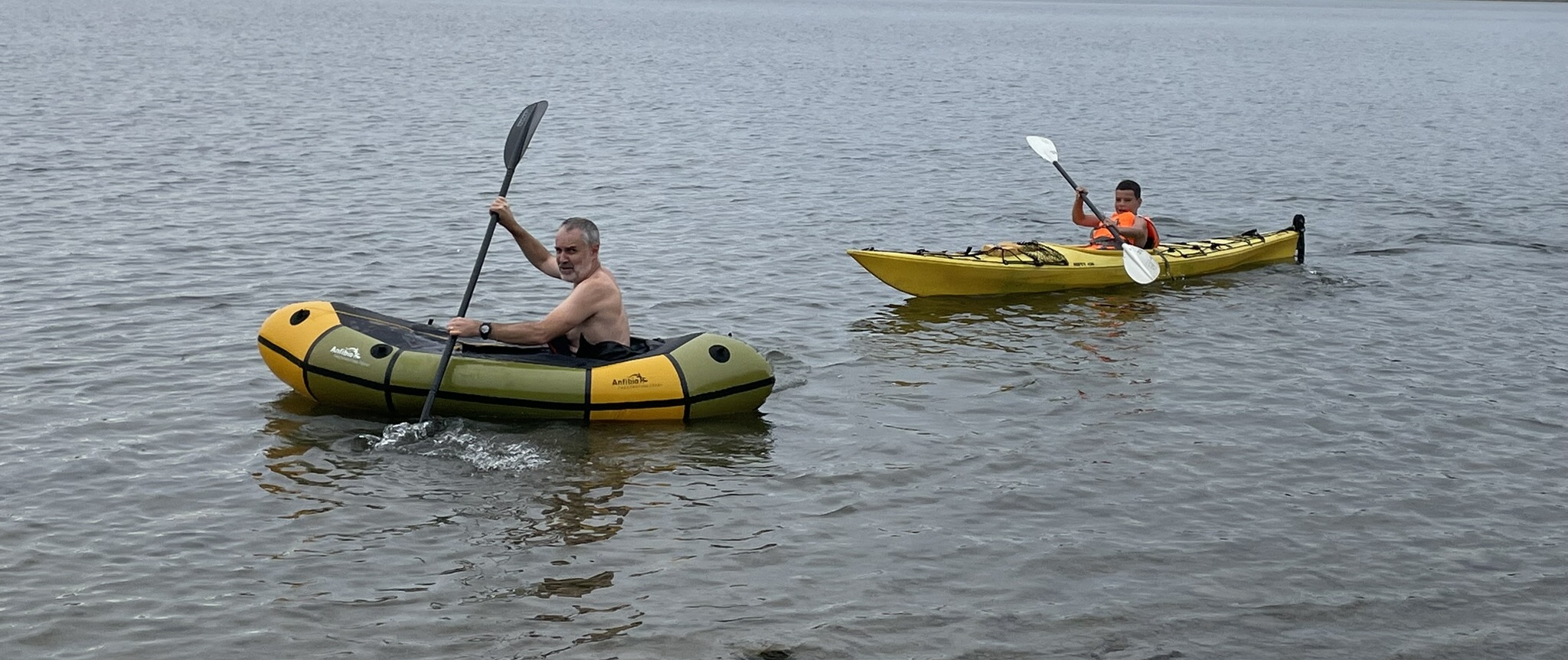 Jsem rád, že si mořský kajak vyzkoušel i Nikolas, který se často při prvním nezdaru rozčílí a vzdává to. Teď tu za drobného deště brázdí záliv, jako by na něm jezdil naprosto běžně.