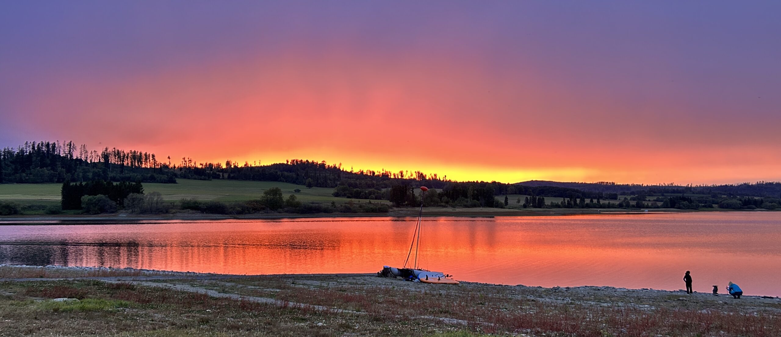 Když máme uvařeno, pobízí mne Myšák, abych se šel rychle podívat k vodě, že něco uvidím. A taky, že ano. Úžasný západ slunka nad hladinou vodní plochy by obstál i na velkoplošné fotografii. Jen k vůli tomuto okamžiku, prožitému na vlastní kůži, stálo dorazit na tuhle akci.
