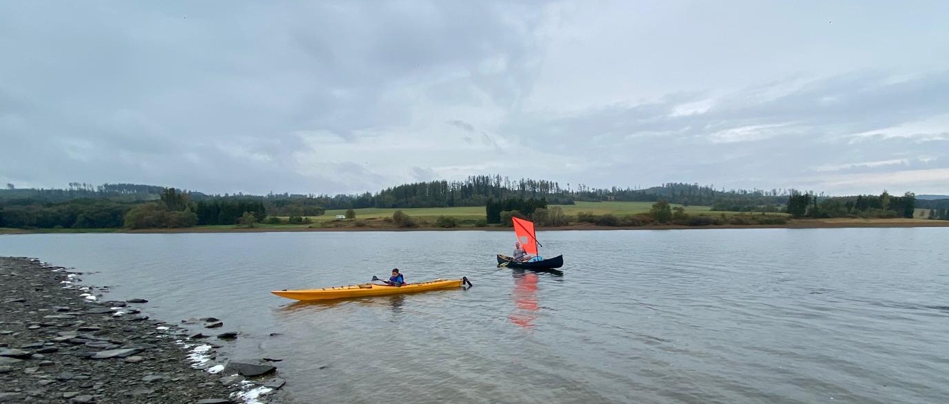 Díky plné tonáži a ne ideálnímu větru, připlouvají oplachtěné kanoe Owaina a Pecky do přístavu v Nové Pláni s časovým odstupem, takže v porovnání s katamaranem či paddleboardem s plachtou to je méně svižné plavidlo, ale když by se sundala plachta a pádlovali dva zdatní padleři, handicap protivětru by snadno eliminovali.