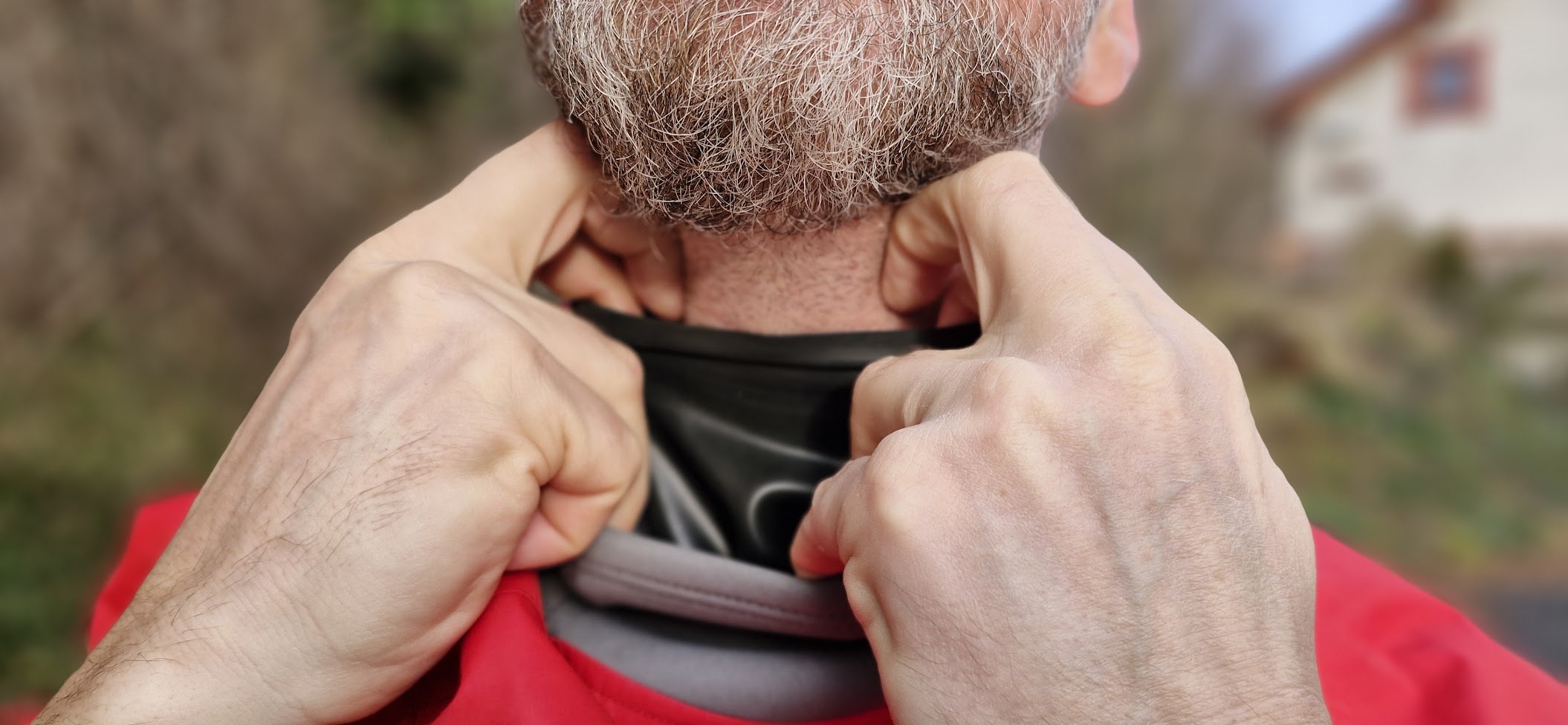 Večer před testováním odstříhávám z límce cca dvou centimetrový pruh a zkouším, zda po oblečení je přijatelně těsný a dýchání bezproblémové. Postupuji opatrně, nejdřív stříhám po obvodu límce jen centimetrový proužek a po ověření, že se mi pořád dýchá ztěžka, odstřihuji ještě jeden.