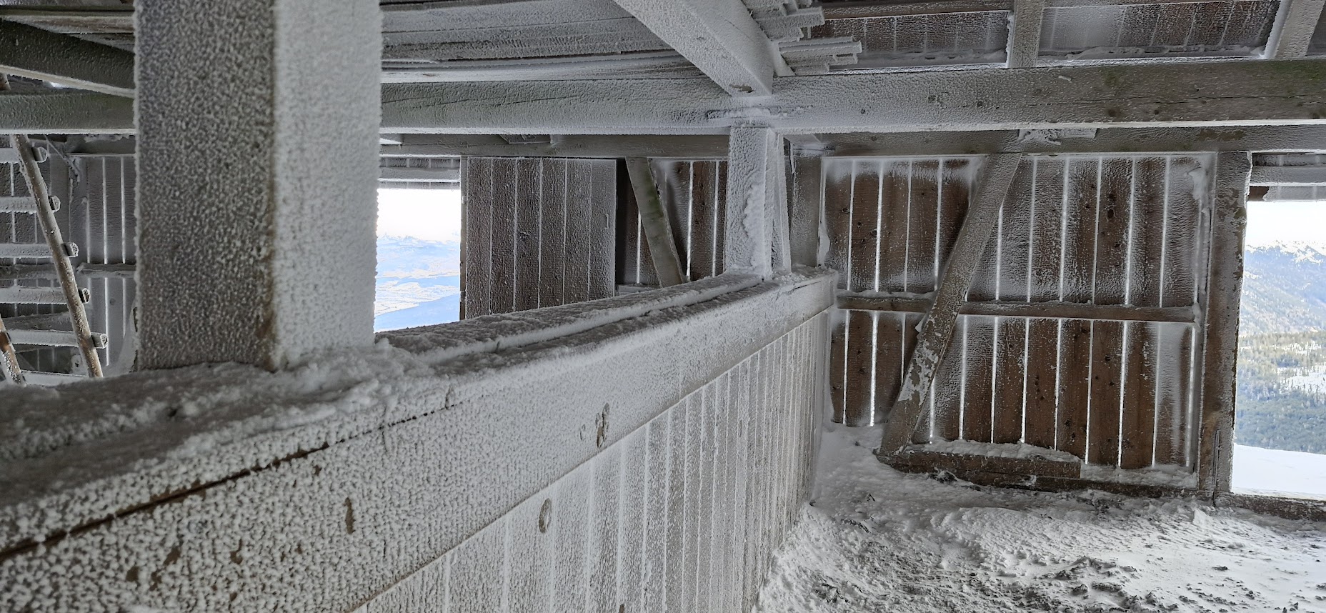 Před dřevěnou stavbou sundávám lyže a pak zalézám dovnitř. Vypadá to tu jak v pohádce o Mrazíkovi a pojem „závětří“ se mi zdá takový relativní. Ale fouká tu rozhodně méně než na volném prostranství.