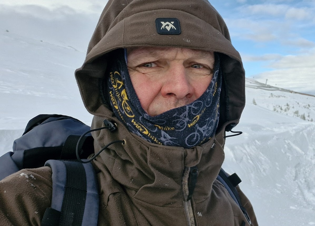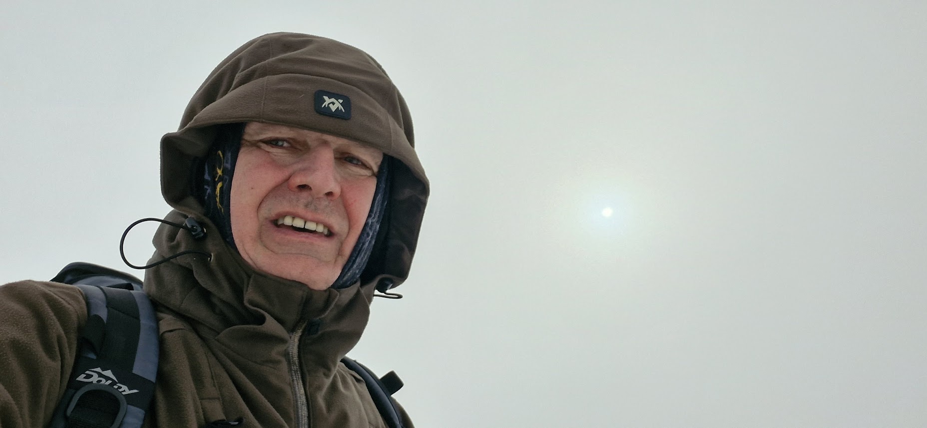 Moc toho k vidění uvnitř není, a tak si tu jen nasazuji rukáv na krk a obličej, utahuji kapuci a vyrážíme opět nahoru. Tam nás proti větru ochrání až horní stanice lanovky. K ní to ale máme ještě minimálně 2,5 km s 240 metrovým převýšením.