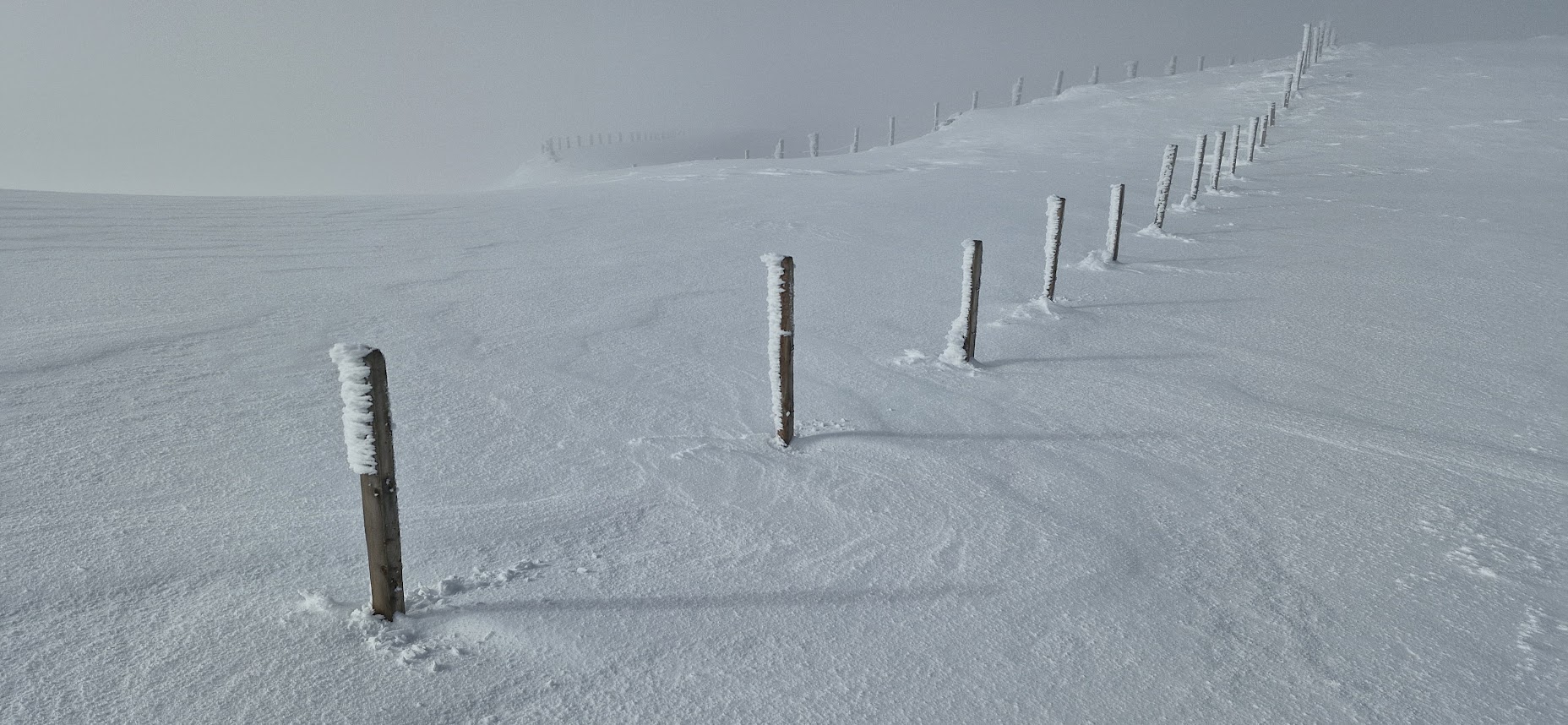 Sotva se od Milane odpoutám, propadám se pravou lyží skoro po koleno do sněhu. Připadá mi, že mi trvá dost dlouho, než se mi podaří lyži ze sněhu dostat a opatrně pokračovat dál. Vybavují se mi náročné okamžiky, kdy jsem se i s lyžemi a báglem propadl víc než dva metry do sněhové trhliny ve svahu Chlebu na Malé Fatře. Tam mi nahoru pomohl Pípa, tady by mi nepomohl nikdo a podle síly signálu na mobilu bych se ani nemusel nikomu dovolat :- (